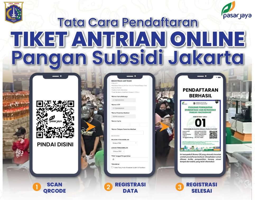 Pendaftaran dilakukan melalui situs resmi yang disediakan Perumda Pasar Jaya dan hanya dapat diakses pada jam tertentu. Setelah mendaftar, tiket antrean wajib disimpan atau dicetak karena menjadi syarat utama saat pengambilan barang.